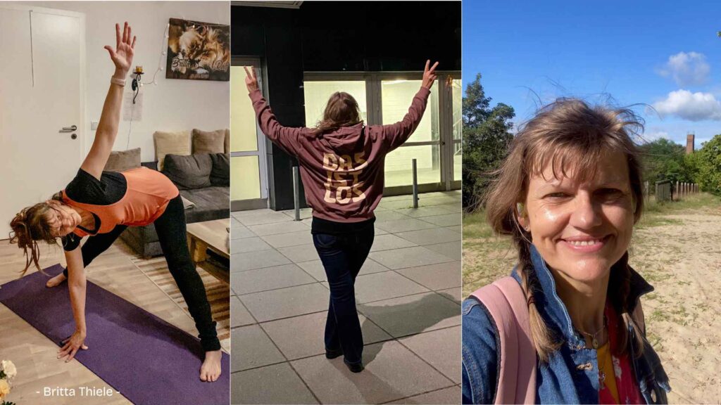 • BEWEGUNG: Finde DEINE Bewegungsform – Radfahren, Wandern, Tanzen, Yoga u. Ä., gerne auch Bewegungen, die den Muskelaufbau fördern, wie Treppensteigen, bestimmte Bewegungsabfolgen bei der Gartenarbeit. Werde wieder aktiver in deinem Alltag. Du musst nicht zwingend ins Fitnessstudio rennen, es sei denn, du hast wirklich Lust dazu. Das Einzige, was zählt, ist, dass du aktiv und in Bewegung bleibst, um dem altersbedingten Muskelabbau entgegenzuwirken (was nicht gebraucht wird, verkümmert – hat meine Oma schon gesagt). Hauptsache, es macht dir Spaß!!